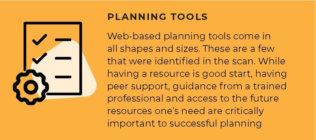 While having a resource is a good start, having peer support, guidance from a trained professional and access to the future resources one’s need are critically important to successful planning. Accordingly, our future efforts will be aimed at expanding on this initial work.