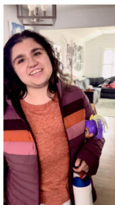 Cassie requires constant, around-the-clock care and safety is at the forefront of every decision made on her behalf. Through self-direction, Cassie was able to rely on her family to carefully orient and familiarize a trusted team of people who understand Cassie’s behaviors, her sensory needs, and her reliance on routine. Working closely with a behaviorist, Cassie’s team can often anticipate changes in her mood and environment before they escalate, helping her stay regulated, calm, and secure.