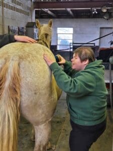 One of the greatest sources of joy in Anneke’s life has always been horses. Introduced to therapeutic riding at a very young age, she spent years riding and working alongside her father, a professional horseman. Even when health challenges made riding uncomfortable, Anneke remained deeply connected to the horses, helping with grooming, spending time at the farm, and attending horse races. Being around horses continues to bring her joy and happiness.